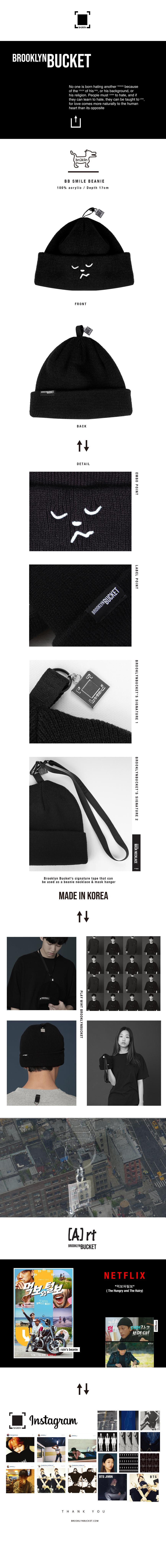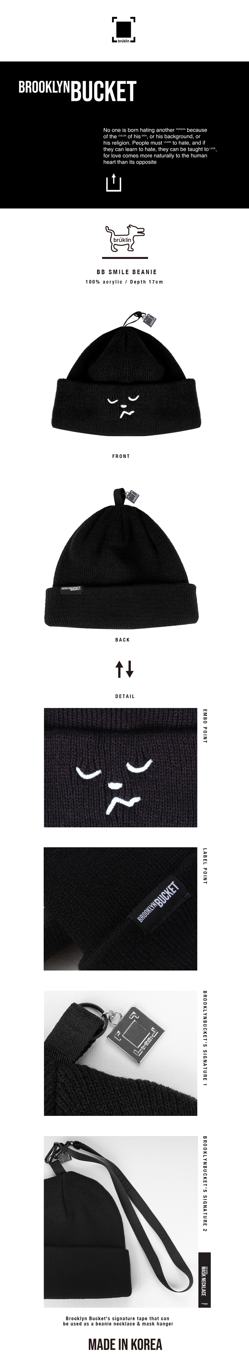 귀엽지만 시크한 무표정 자수 디테일이 돋보이는 BLACK LABEL FACE 비니는